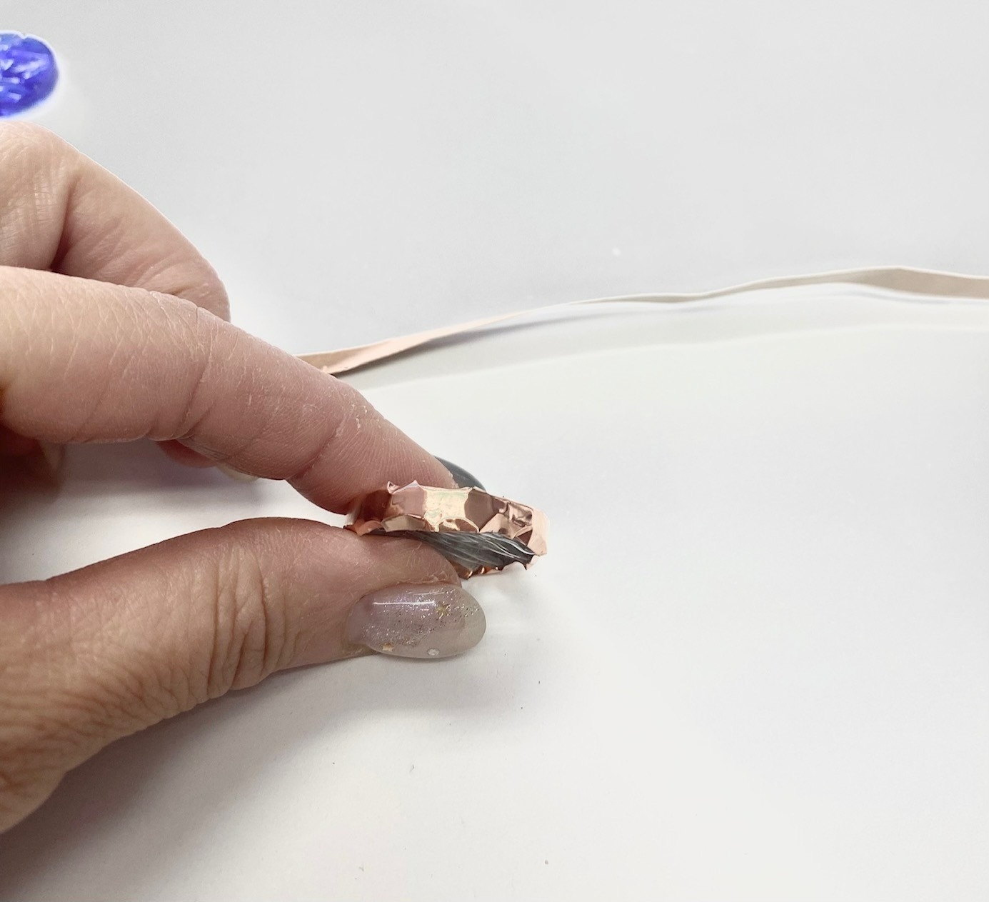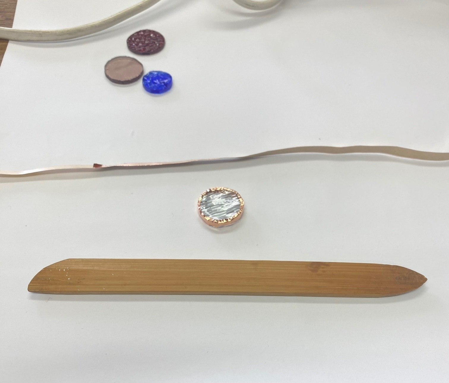 このガラスに銅のテープをへらを使い隙間なく巻き付けていきます。