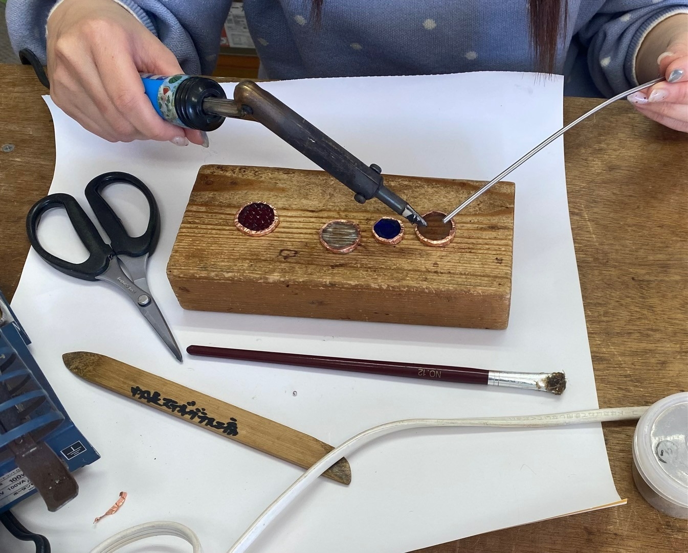 工房には生徒さんが6名いらっしゃっていてステンドグラス歴10年以上という生徒さんも!