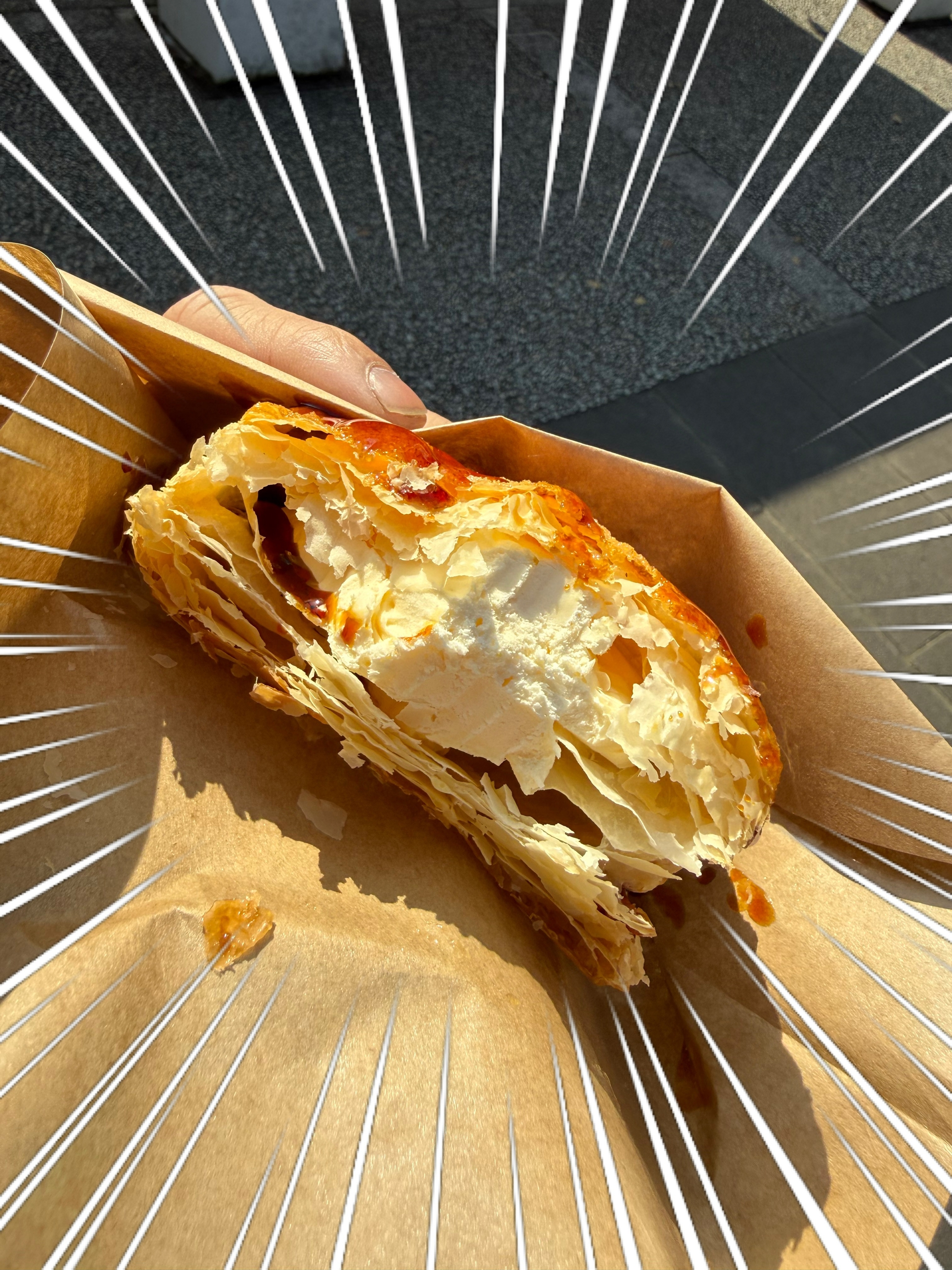 上にかかったカラメルソースとサクサクのパイ生地、プリンアイスの組み合わせがとてもおいしかったです🩷