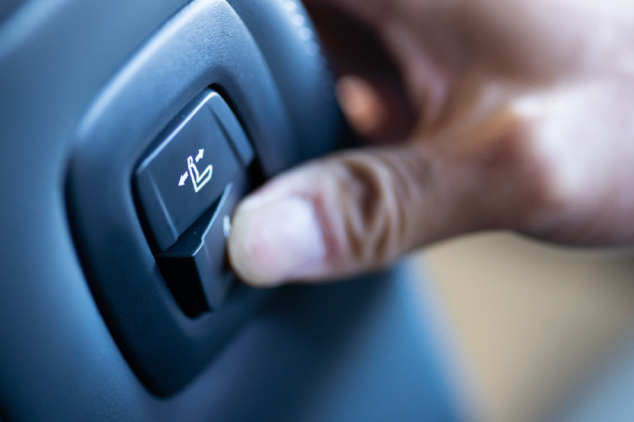 スタッフ:先ほどの パワーイージーアクセスシステムではありませんが、 助手席肩口パワーシートスイッチ(シートスライド&リクライニング)で、助手席の人が乗降しやすいようにドライバーが操作してあげることが出来ます。それに、後席に人を乗せた時、後席のスペースを広げる操作が、このスイッチで運転席側から可能なんです。